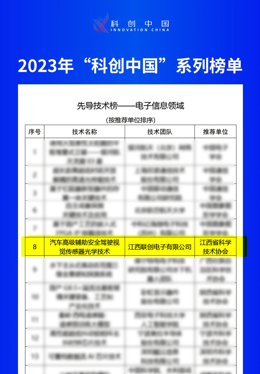 【概要描述】近日,中国科学技术协会公布了2023年度“科创中国”系列榜单遴选结果,LY乐鱼「中国」官方网站,的“汽车高级辅助安全驾驶视觉传感器光学技术”成功入选电子信息领域先导技术榜。